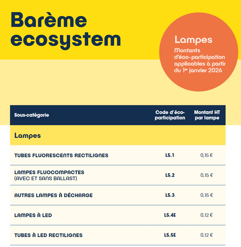 Le prix des lampes inclura la nouvelle éco‑contribution, affichée séparément.